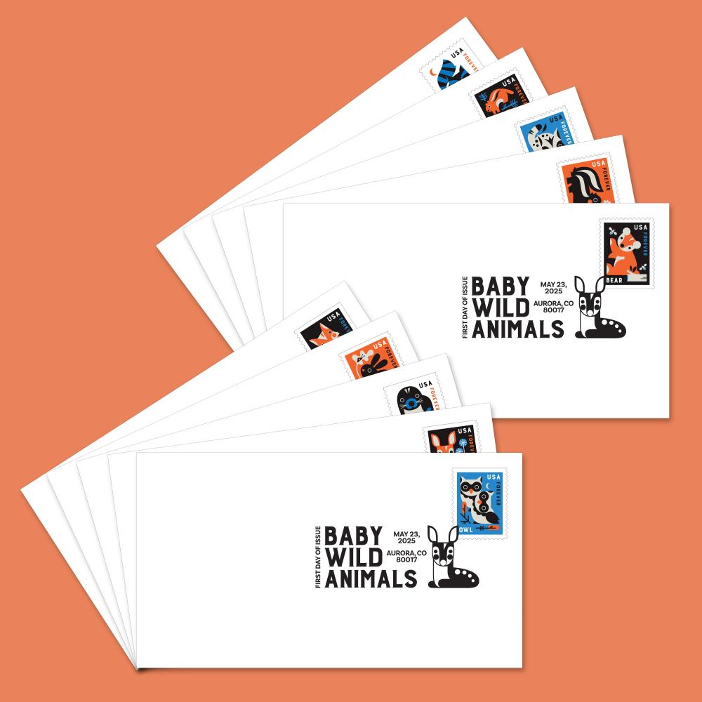 Delight in the charms of animal younglings with this set of 10 Baby Wild Animals Digital Color Postmark First Day Covers.