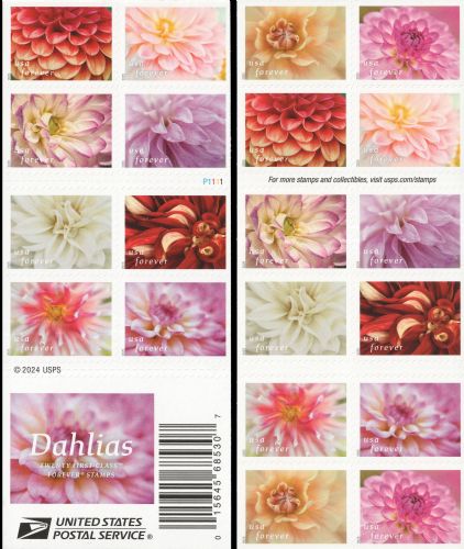 - The Dahlias stamps are being issued as Forever stamps in booklets of 20.